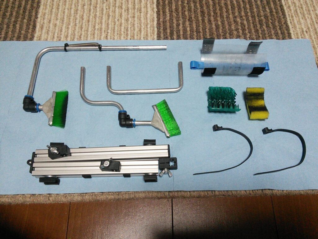 全て一人作業だったのメモも何も残していませんでしたが。写真を見ると、何を狙ってどんな作業をしていたのかを、かなり具体的に思い出せます。これは3Dプリンタを導入する前に作り上げた3点同時清掃具の全体写真です。ここで諦めていたら楽だったのですが(笑)3Dプリンタという道具と出会ったことで、試作の迷路にどっぷりとハマることになりました。写真を撮ったのは2017年の5月のようです。